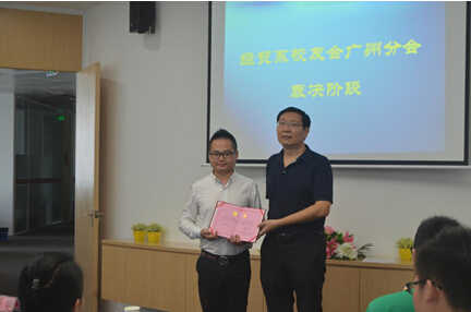 接着,方建国教授为管理层颁发聘任证书,并宣告经贸系校友会广州分会正式成立。方建国教授表示,校友是社会检验学校办学水平的标准,校友工作也是衡量大学办学水平的一个重要标尺。校友会立足广州,将继续加强与母校的联系、经络互通、资源共享,更为在广州发展的校友搭建了桥梁,为母校的发展和建设贡献力量。他肯定了广州分会的成立的重要意义,寄望校友会能越办越好。